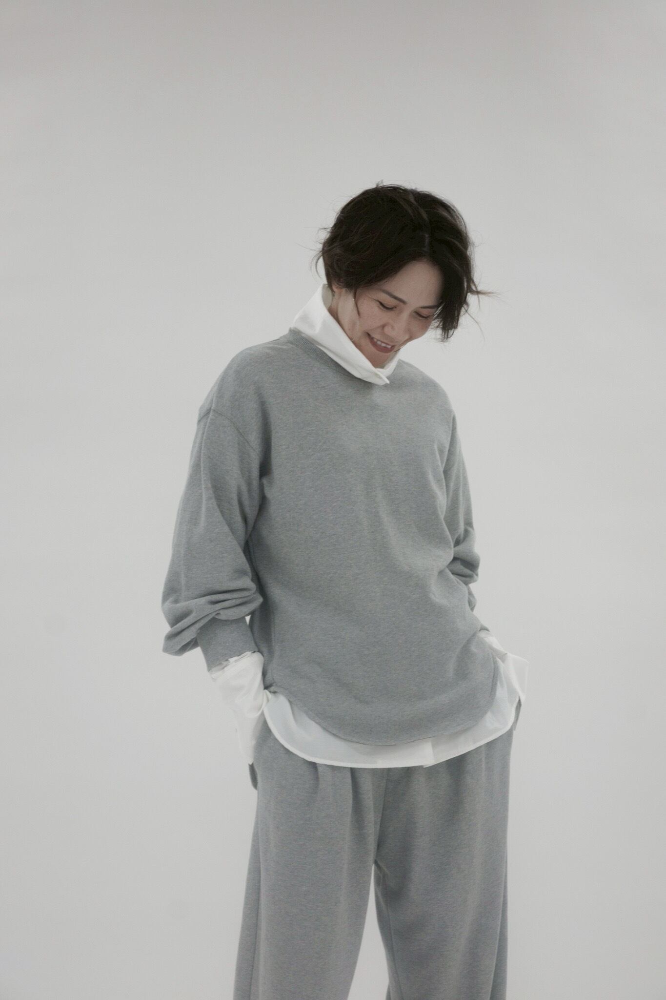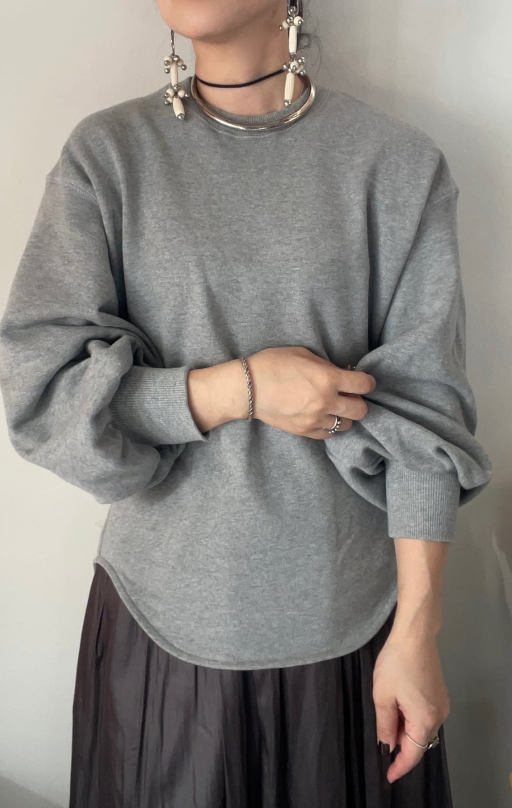 柔らかな肌触りと程よいハリを備えたコットン裏毛素材に、袖に丸みを持たせた立体的なパフスリープを組み合わせることで、シンプルながらも印象的な一枚に。肩の力を抜いたリラックス感のあるシルエットながら、袖口のリブでメリハリをプラス。カーブを描く裾ラインがボトムと自然になじみ、アウトスタイルもバランス良く決まります。スカートと合わせてフェミニンに、パンツと合わせてモードに、幅広く着回せる万能トップスです。